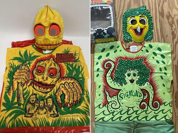 For our Halloween episode, we're revisiting a favorite subject: the cheapo department store Halloween costumes produced for decades by the Ben Cooper company. Kids loved slipping into their uncomfortable plastic masks and weird vinyl smocks for an evening of begging the neighbors for Twix bars. We look at superhero costumes (including some odd ones like Web Woman), Krofft costumes (you could be a Sleestak, a Bugaloo, or even Dr. Shrinker), and lots more, including the infamous Fonzie
