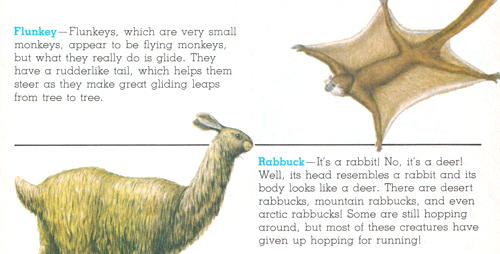 The flunkey and rabbuck come from After Man: A Zoology of the Future by Dougal Dixon. (Did you know there was a Speculative Evolution Wiki? The internet really does have everything.)