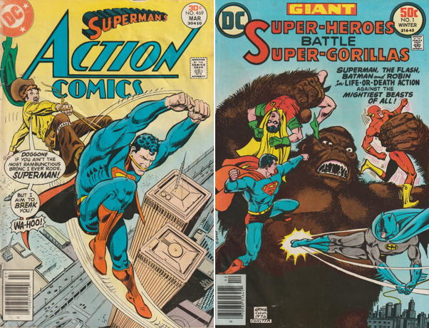 With the Mayor away on special assignment, it's a quick solo show with Kevin just yammering about comic books from 1976. Our collection of goofy 50-year-old comics includes: An evil space cowboy riding Superman, Harvey Pekar on the streets of Cleveland, the Joker and his pet hyena, Alfred E. Neuman as George Washington, Ronald McDonald in the Olympics, super heroes battling super gorillas, Andy Panda's tricky pal Charlie Chicken, and much more. Half a century ago, comic books cost thirty cents. But this podcast is free. All we ask is that you waste your time giggling about Aquaman with us.